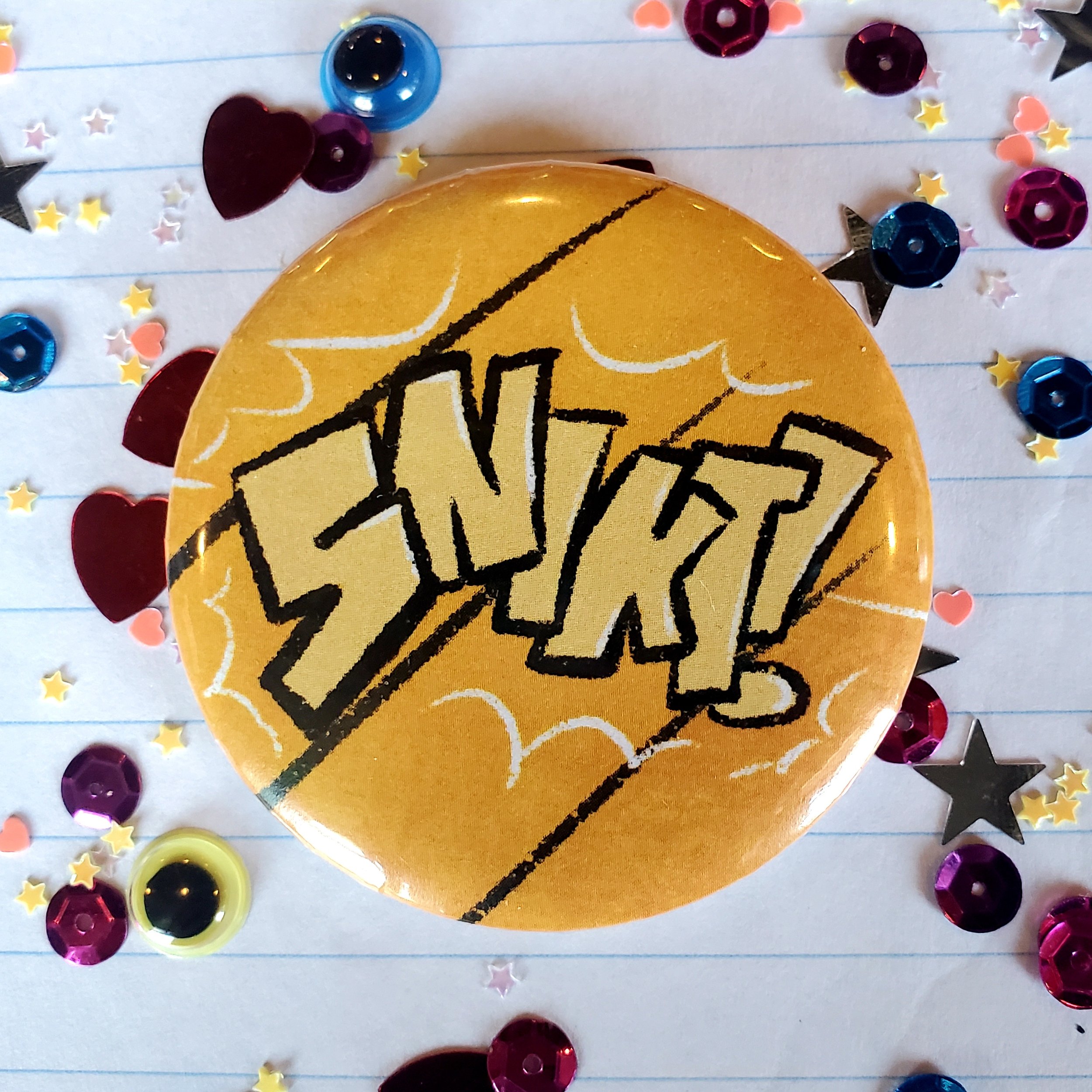 Image 1 of 1 snikt - button $4.00 2” round button with a glossy finish and plastic backing Add To Cart Added! 2” round button with a glossy finish and plastic backing