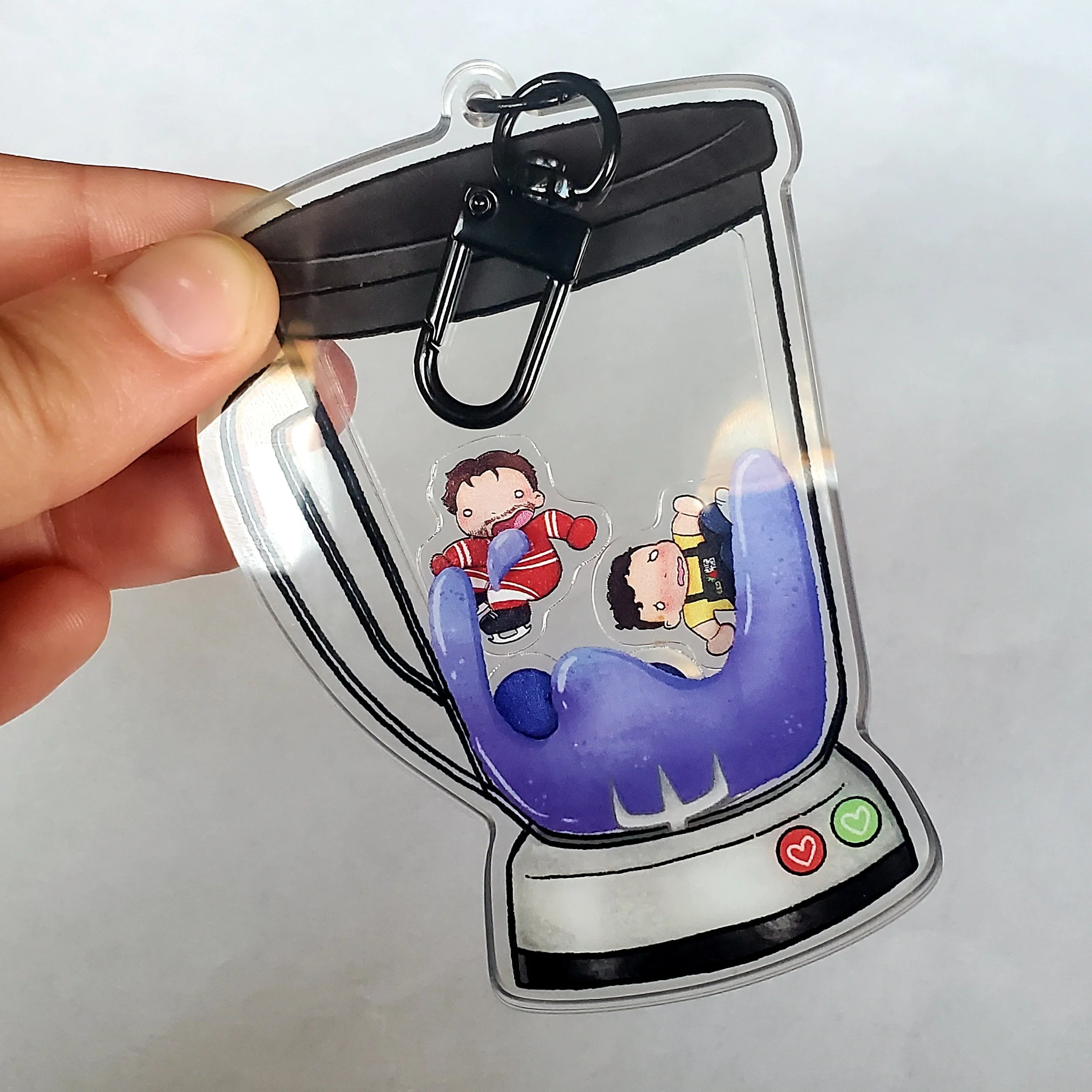 Image 1 of 2 Image 2 of 2 skip smoothie shaker $20.00 3.5 inch acrylic keychain with a black clasp and 6 charms inside that move when you shake it. Add To Cart Added! 3.5 inch acrylic keychain with a black clasp and 6 charms inside that move when you shake it.