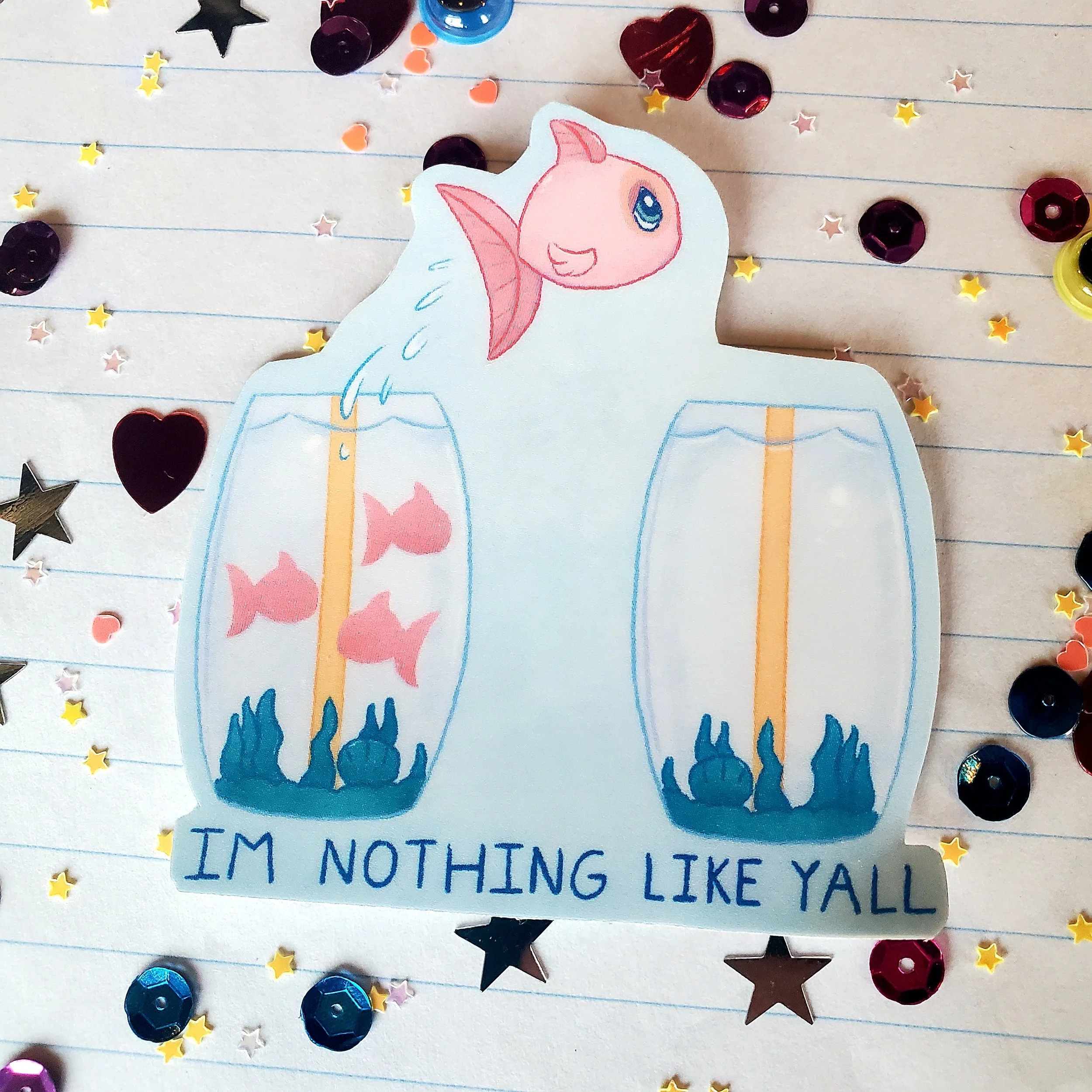 Image 1 of 1 nothing like yall - sticker $5.00 3” matte vinyl stickerWaterproof, dishwasher safe, and weatherproof for about 2-3 years Add To Cart Added! 3” matte vinyl stickerWaterproof, dishwasher safe, and weatherproof for about 2-3 years