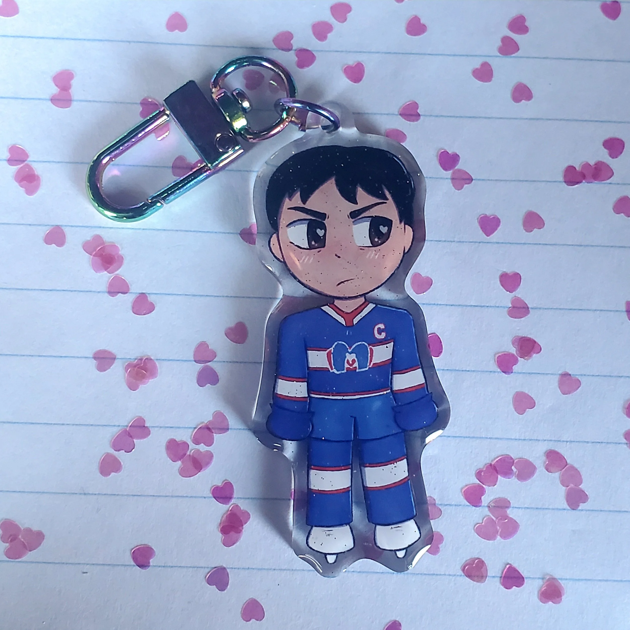 Image 1 of 2 Image 2 of 2 Shane - Keychain $10.00 2.5” double sided acrylic keychain with a glitter epoxy coating and a rainbow clasp Add To Cart Added! 2.5” double sided acrylic keychain with a glitter epoxy coating and a rainbow clasp
