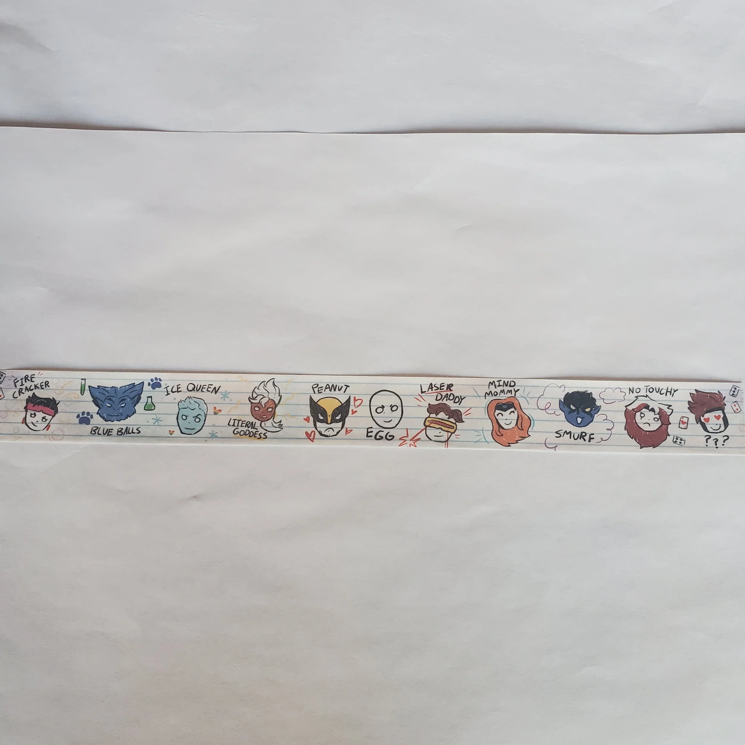Image 1 of 2 Image 2 of 2 Xmen - washi tape $8.00 2.5cm*5m washi tape rollDrawn by deadpool Quantity: Add To Cart Added! 2.5cm*5m washi tape rollDrawn by deadpool