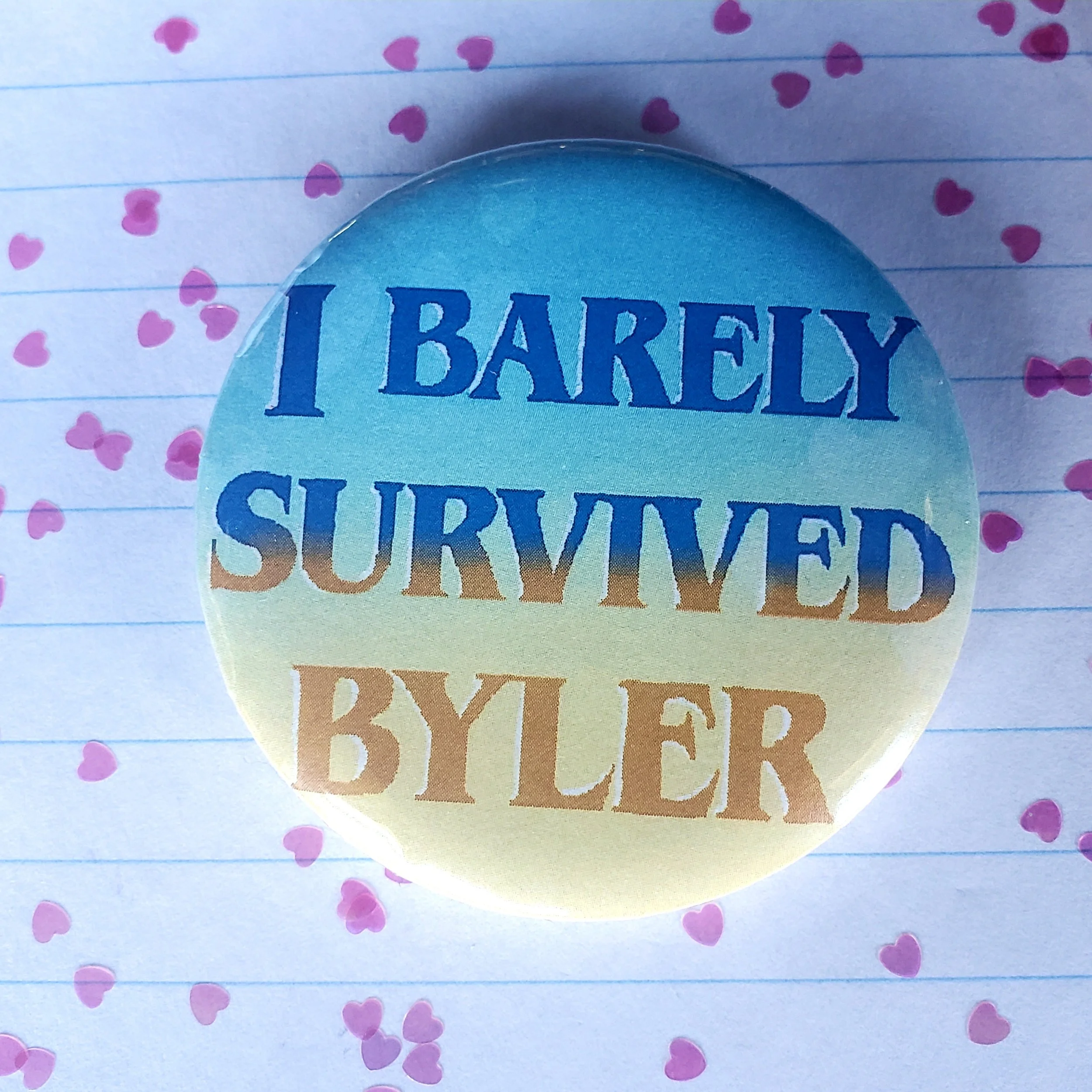 Image 1 of 1 byler - button $4.00 2” round button with a glossy finish and plastic backing Add To Cart Added! 2” round button with a glossy finish and plastic backing