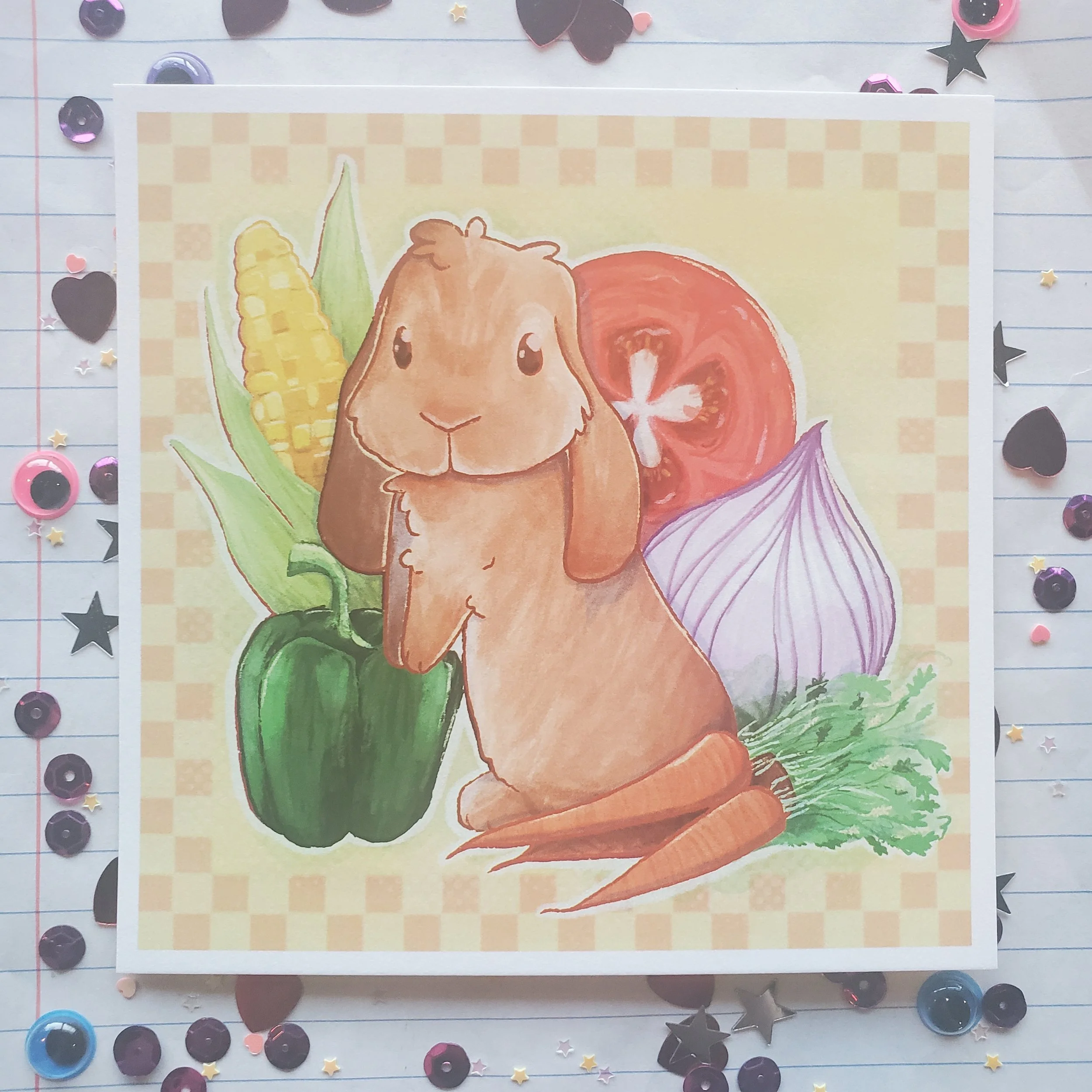 Image 1 of 1 vegetable bunny - print $7.00 5x5” thick matte card stock print Quantity: Add To Cart Added! 5x5” thick matte card stock print