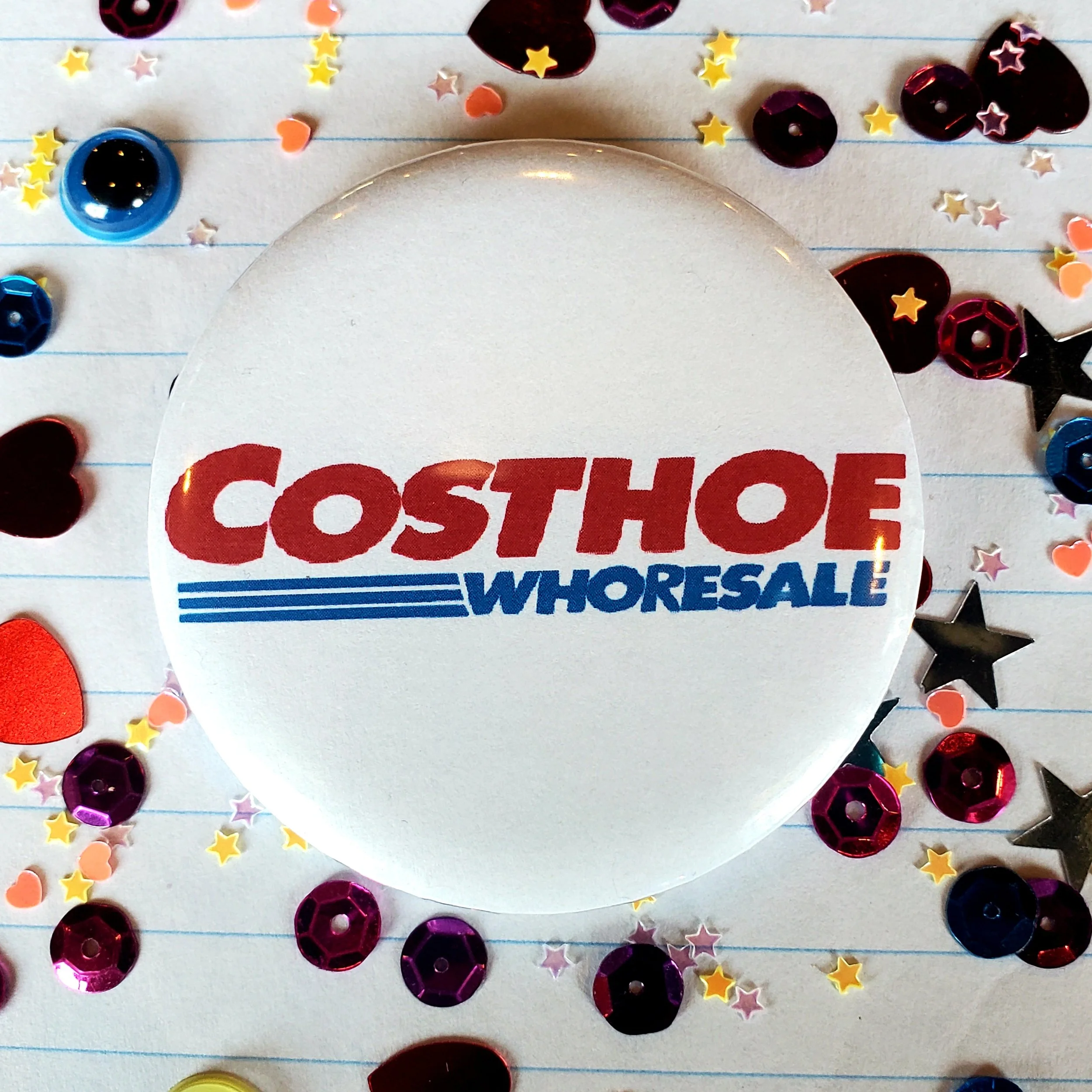 Image 1 of 1 costhoe - button $4.00 2” round button with a glossy finish and plastic backing Add To Cart Added! 2” round button with a glossy finish and plastic backing
