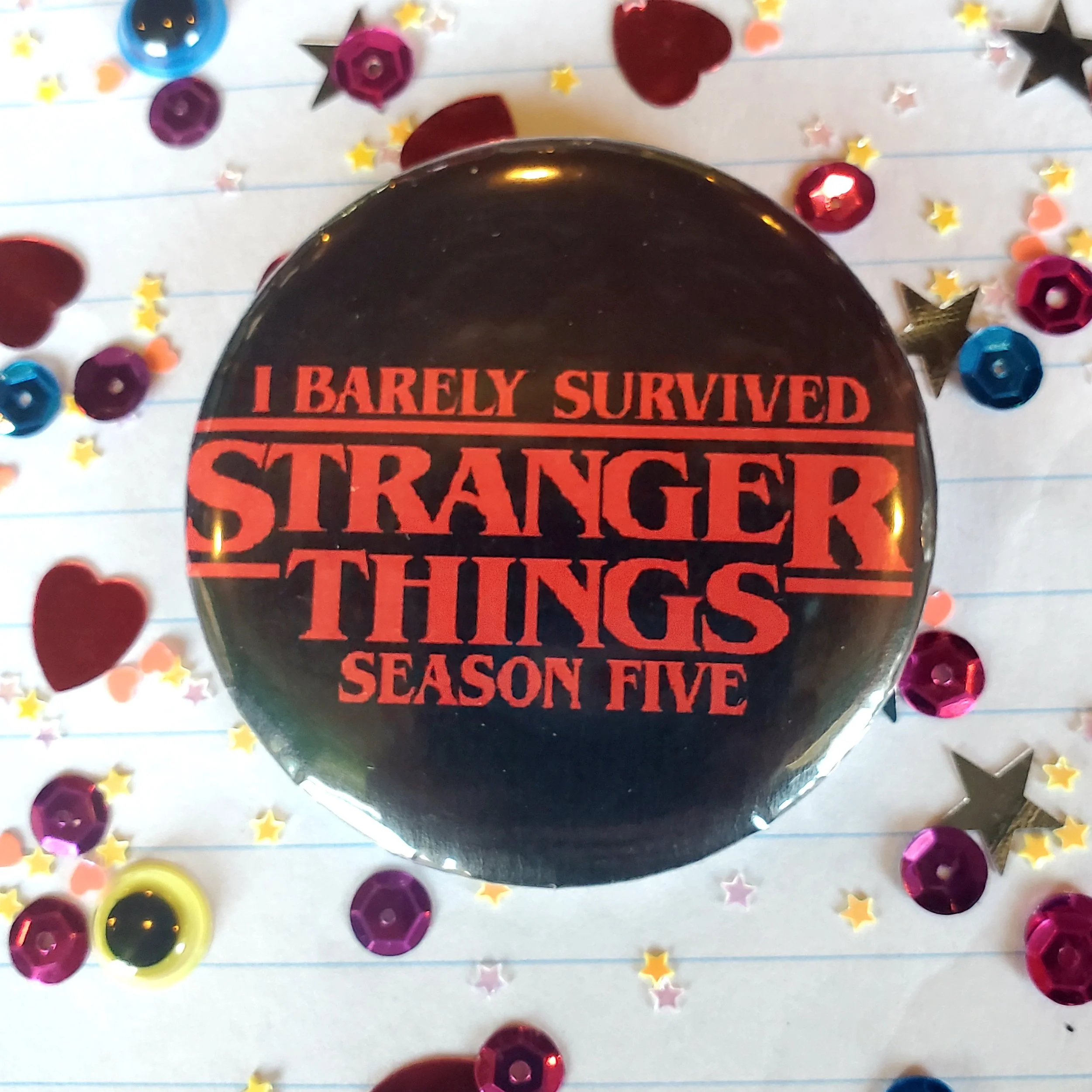 Image 1 of 1 stranger things - button $4.00 2” round button with a glossy finish and plastic backing Add To Cart Added! 2” round button with a glossy finish and plastic backing