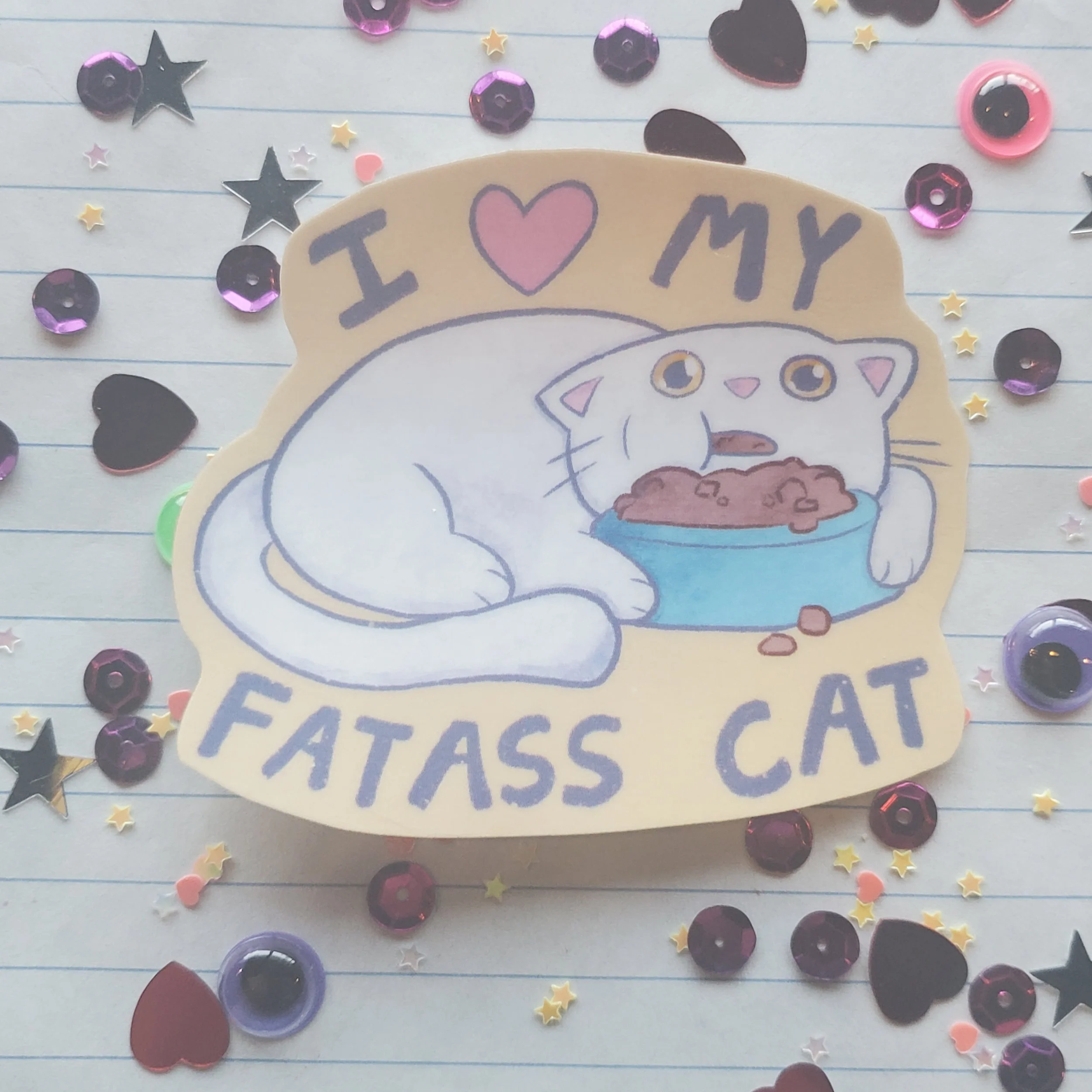 Image 1 of 1 i love my fatass cat - sticker $5.00 3” glossy vinyl stickerWaterproof, dishwasher safe, and weather proof for about 2-3 years Quantity: Add To Cart Added! 3” glossy vinyl stickerWaterproof, dishwasher safe, and weather proof for about 2-3 years