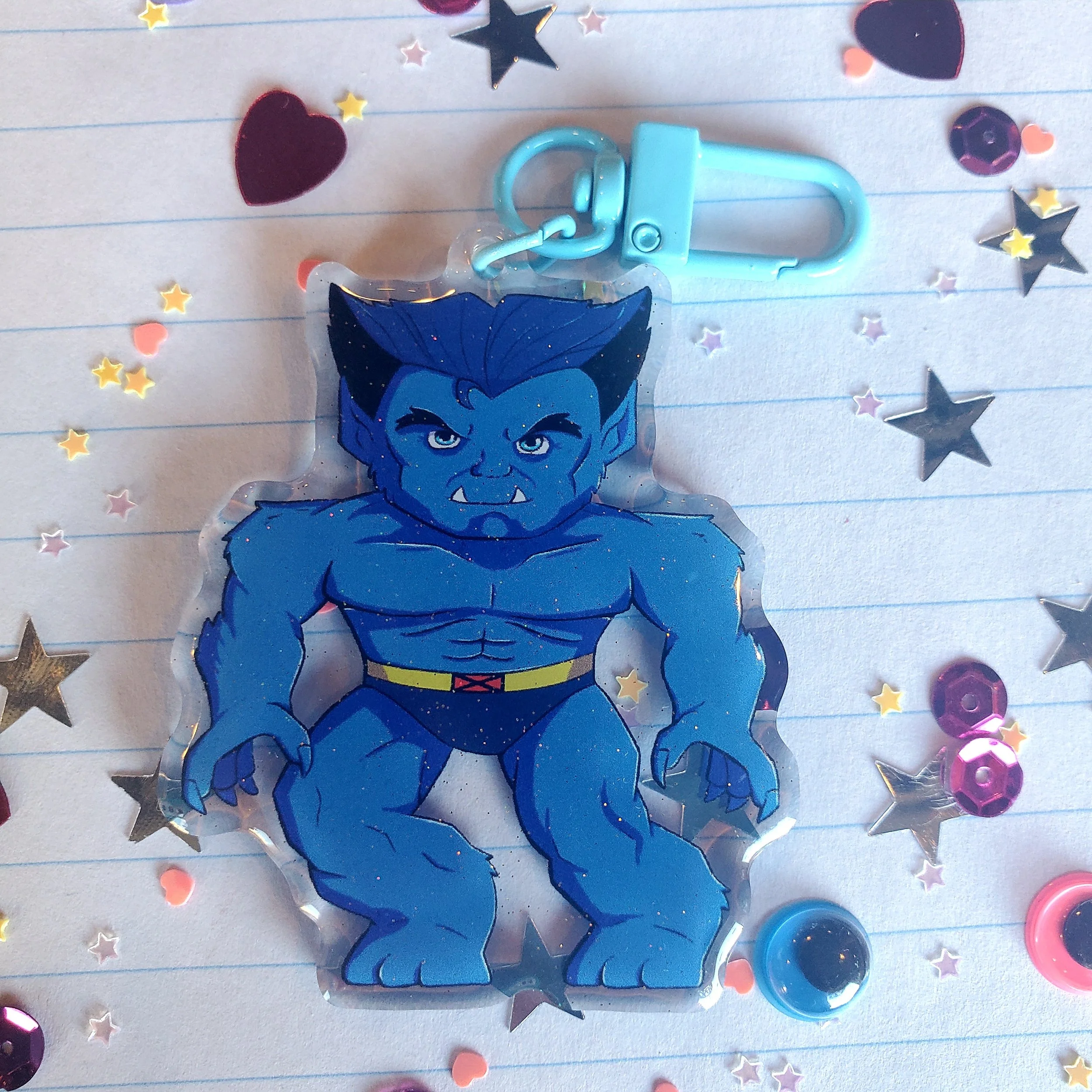 Image 1 of 1 Beast - keychain $10.00 2.5” double sided acrylic keychain with a glitter epoxy coating and a blue clasp Quantity: Add To Cart Added! 2.5” double sided acrylic keychain with a glitter epoxy coating and a blue clasp