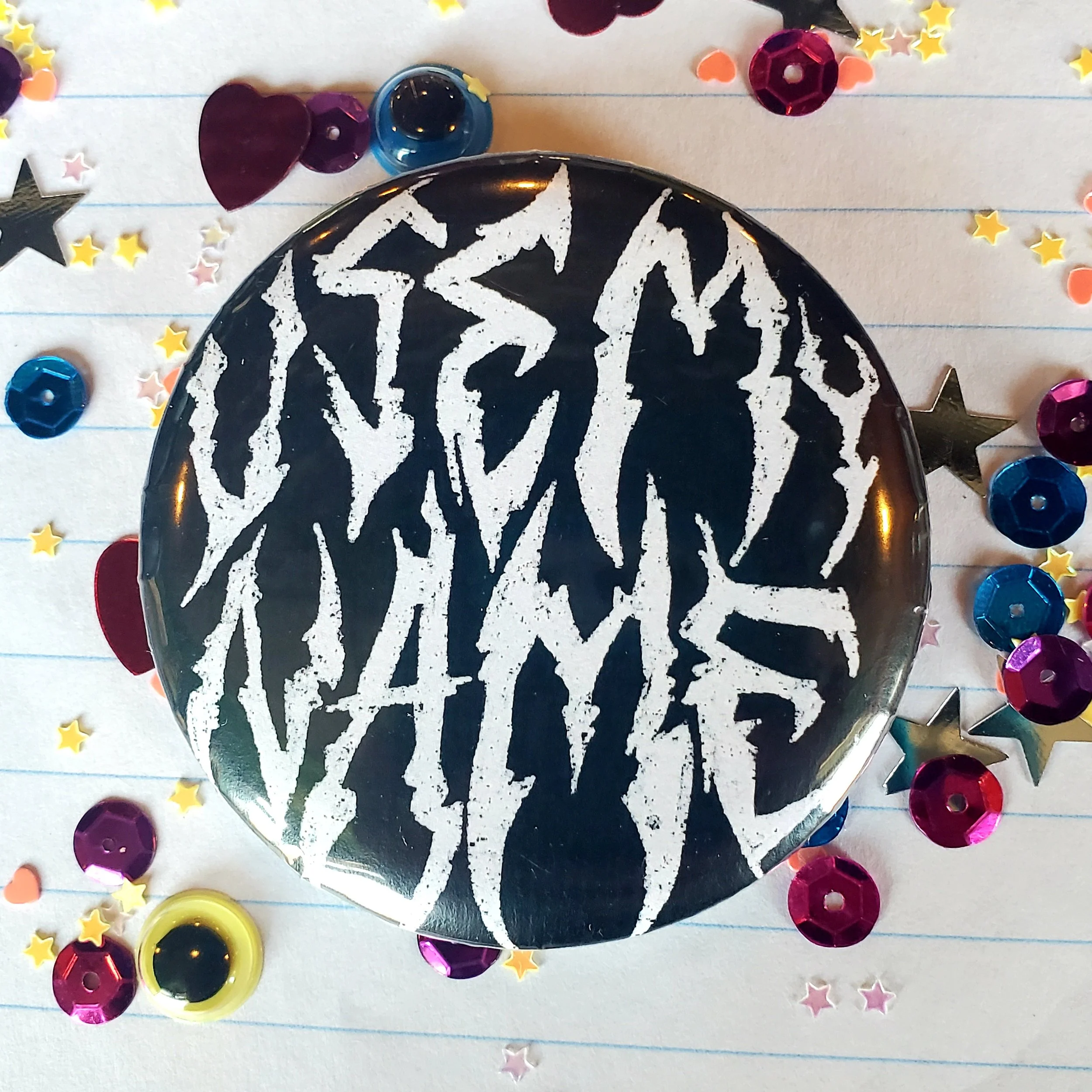 Image 1 of 1 use my name - button $4.00 2” round button with a glossy finish and plastic backing Add To Cart Added! 2” round button with a glossy finish and plastic backing